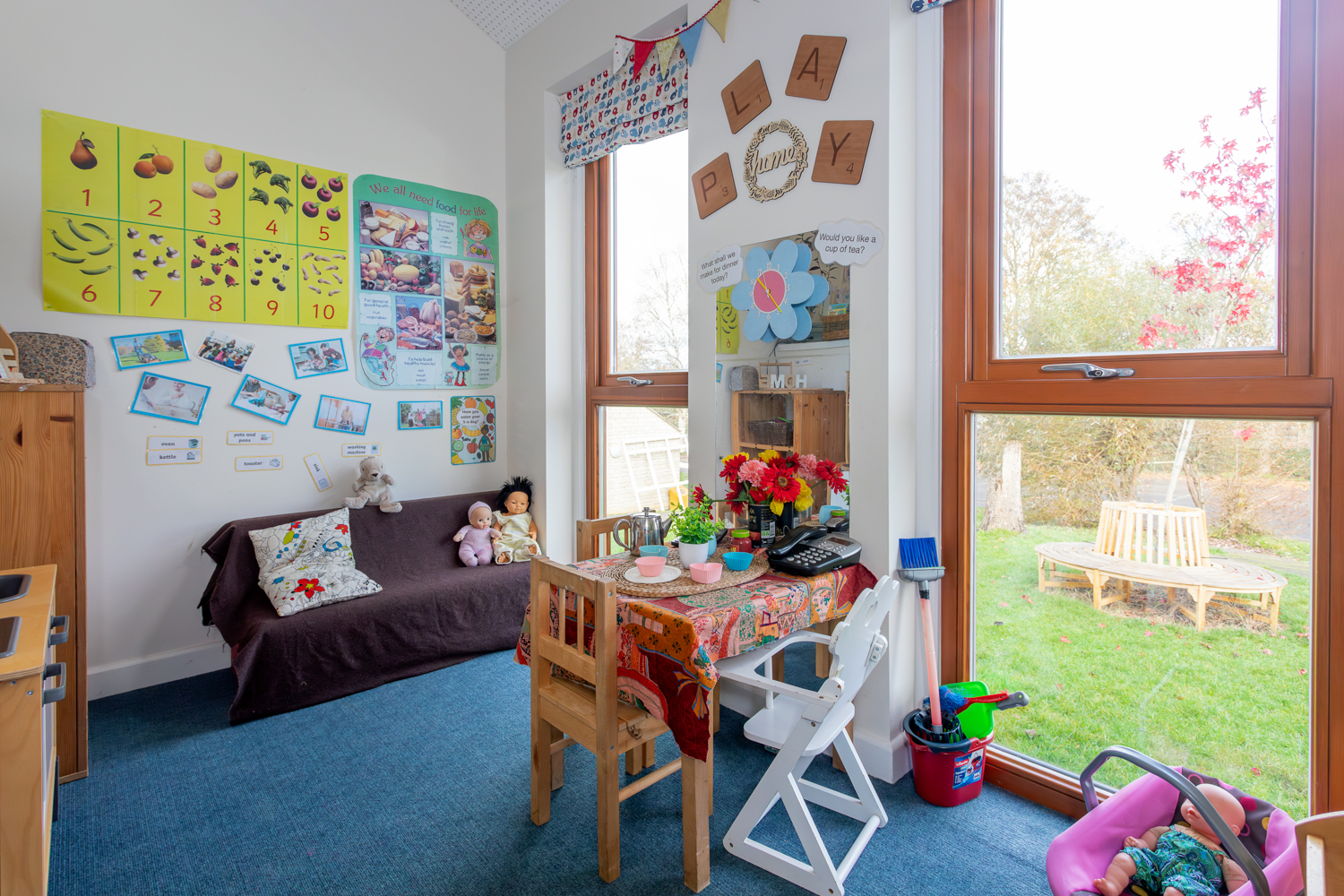 Our Home Corner inspires imaginative play and helps children make sense of the world around them. Equipped with real-life role play items such as a play kitchen, dolls, and dressing-up clothes, this area supports social interaction, language development, and creativity. It’s a favourite spot for children to engage in pretend play, collaborate with friends, and explore familiar daily routines.
