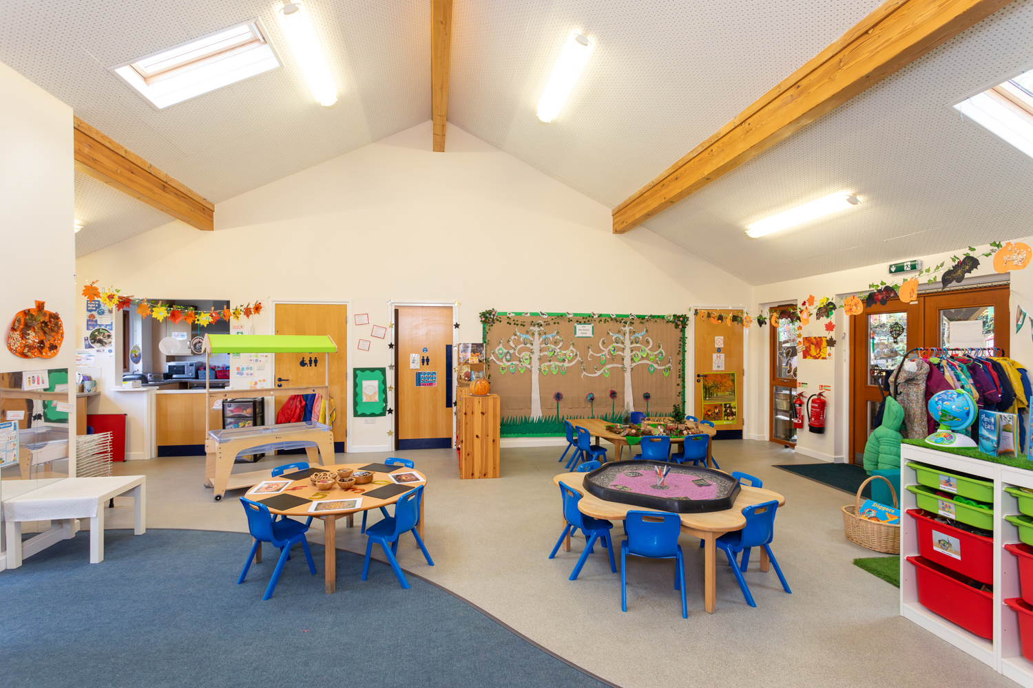 The heart of our preschool, the main indoor space is where much of the day’s learning takes place. This flexible area is set up with a variety of carefully planned activities to support all areas of the Early Years curriculum. From messy play to construction, mark-making to puzzles, there’s something for every interest and stage of development.